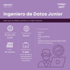Mi experiencia con Smart Talent fue muy buena, ya que, desde la inscripción, las diferentes pruebas y el acompañamiento en todo el proceso siempre se me brindó apoyo, se aclararon dudas y se realizó un seguimiento constante a cada punto del proceso, les agradezco por esto es algo extra que los diferencia por mucho de empresas con estos servicios, muchas gracias.
